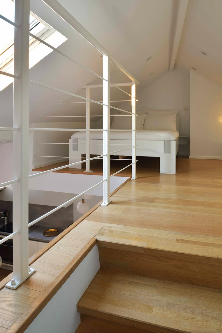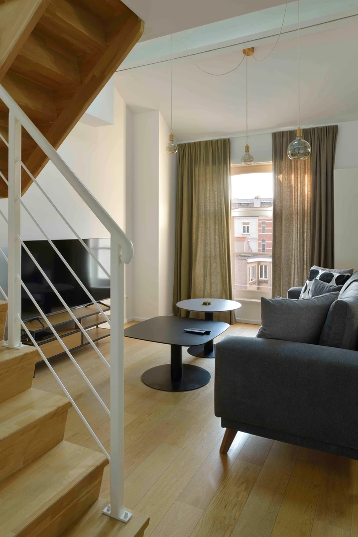 This 1 bedroom duplex features a mezzanine with a bed in the Louise Quarter. It offers 75 m² of living space on the 4th floor.